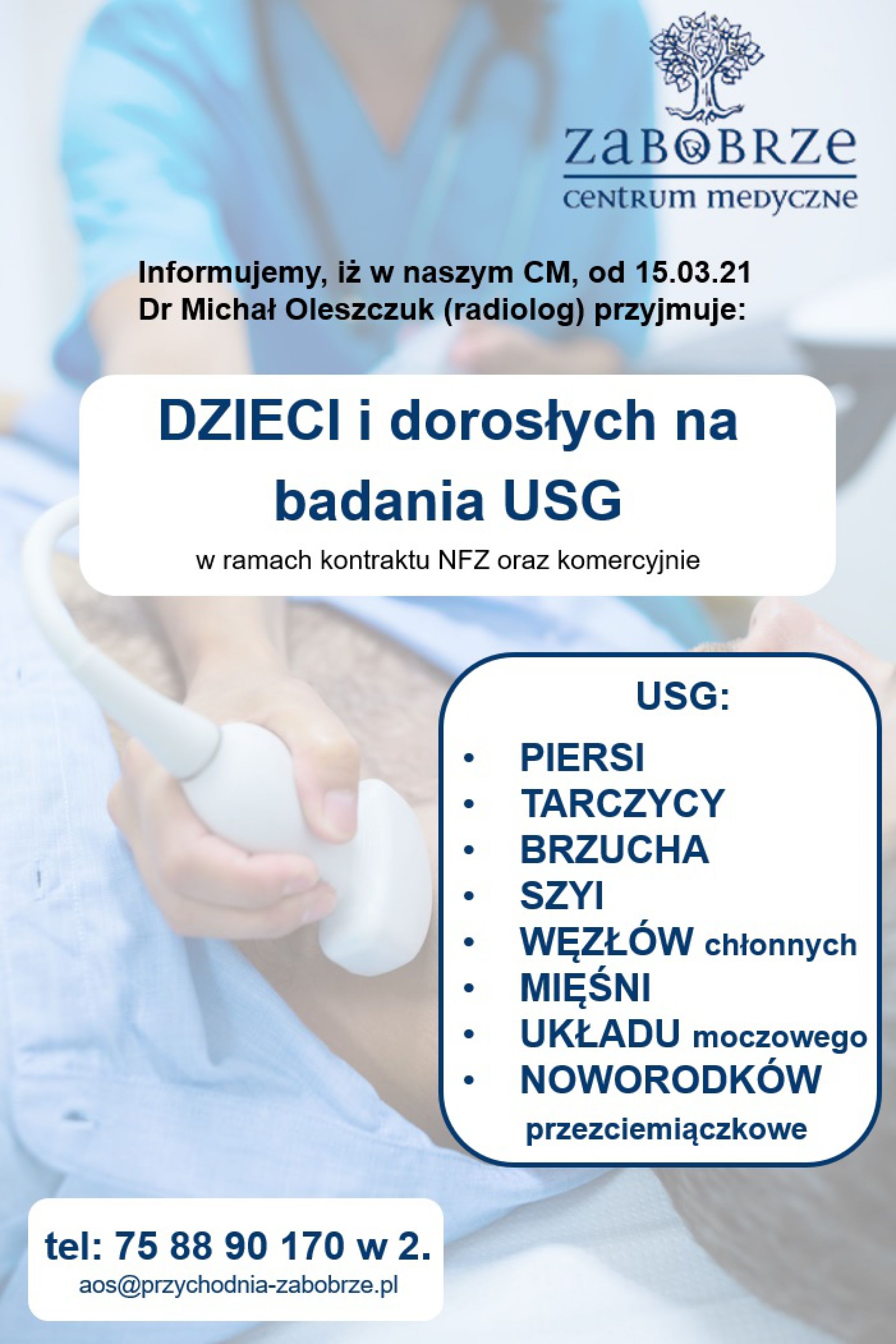Doktor między innymi wykonuje badania, o które Państwo często pytacie - tj. USG dzieci i noworodków oraz kontrolne USG piersi.