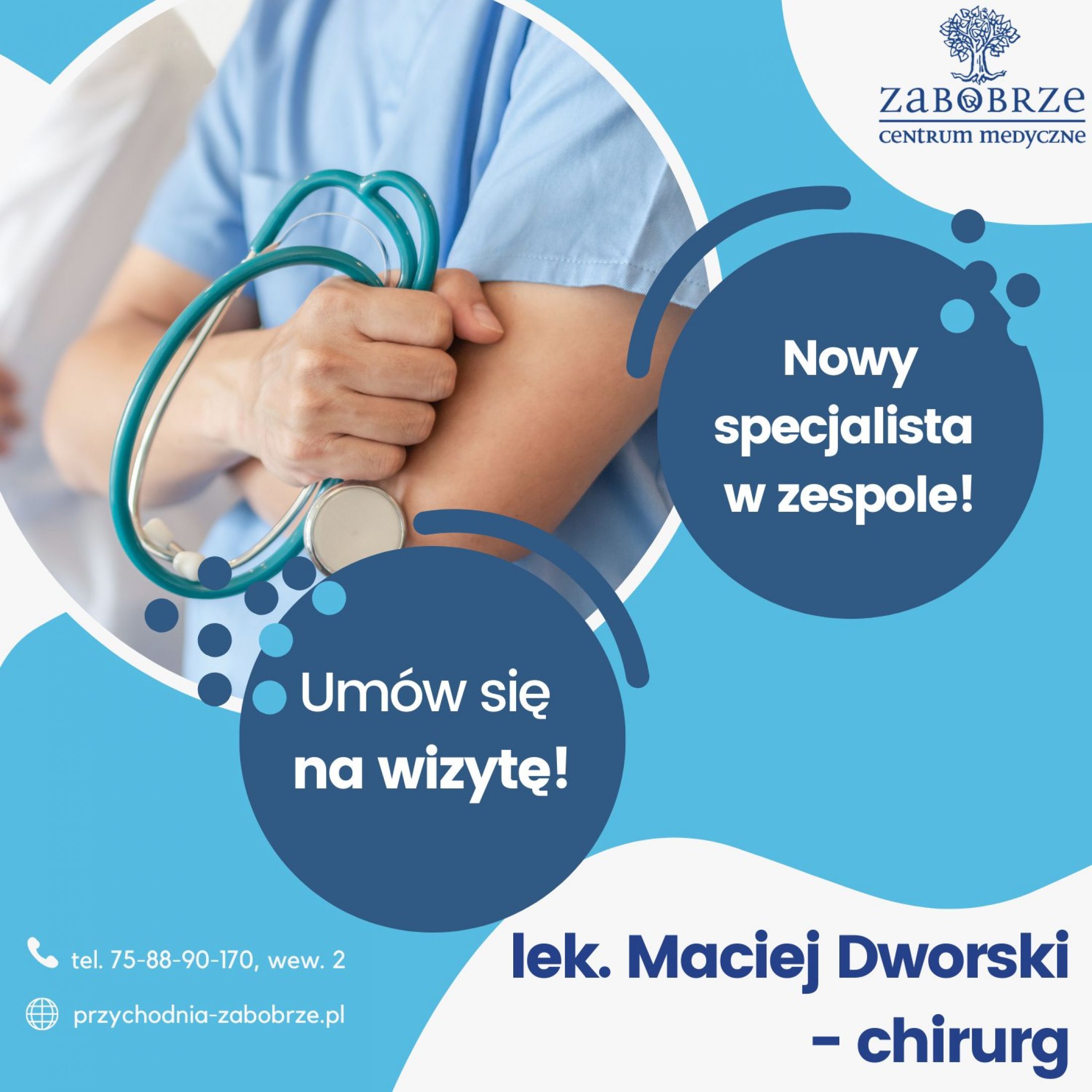 Miło nam poinformować, że dołączył do nas nowy specjalista: lek. Maciej Dworski - chirurg.